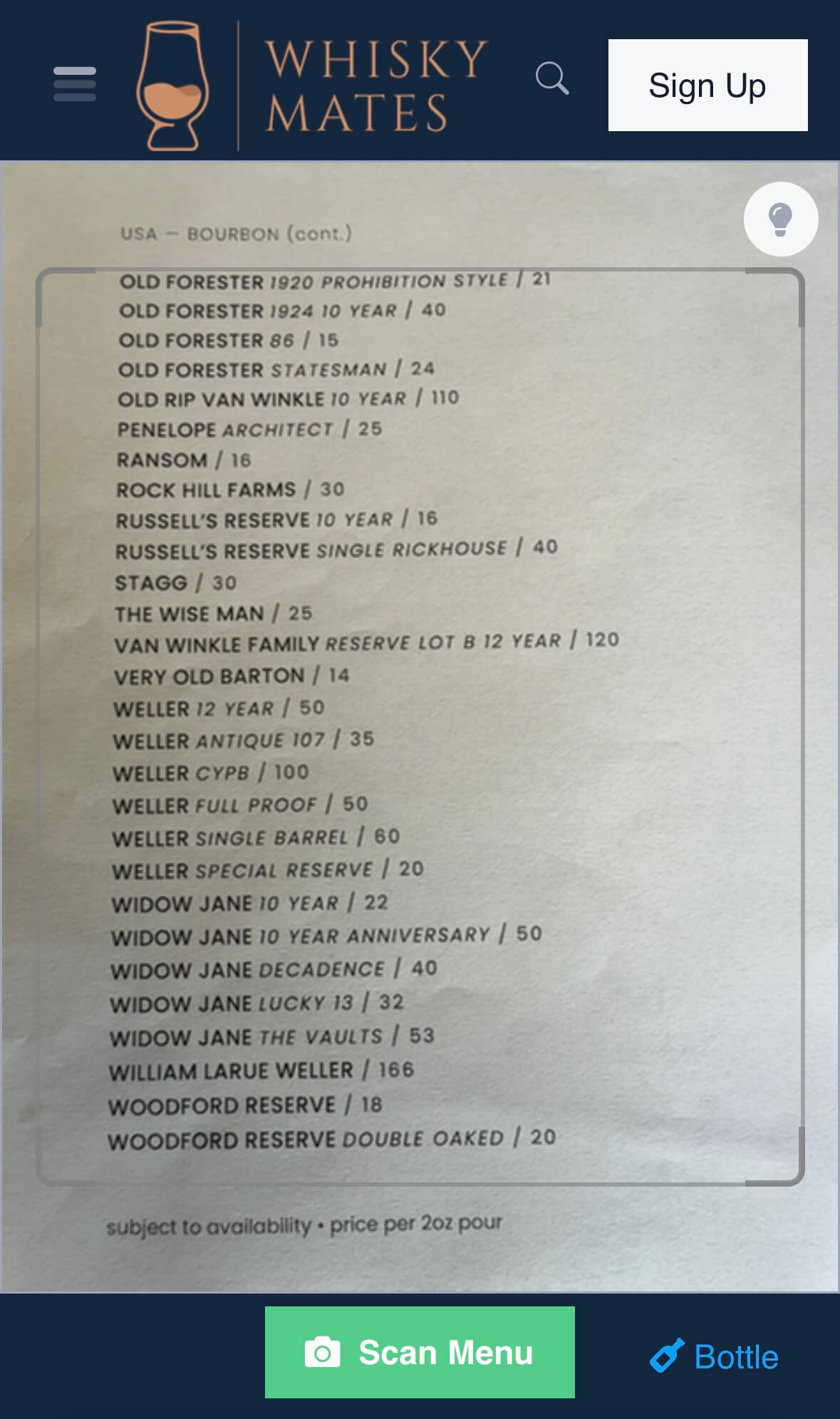 Snap a pic of a spirit menu to find the best deals, highest rated spirits, personalized spirit recommendations, and more.